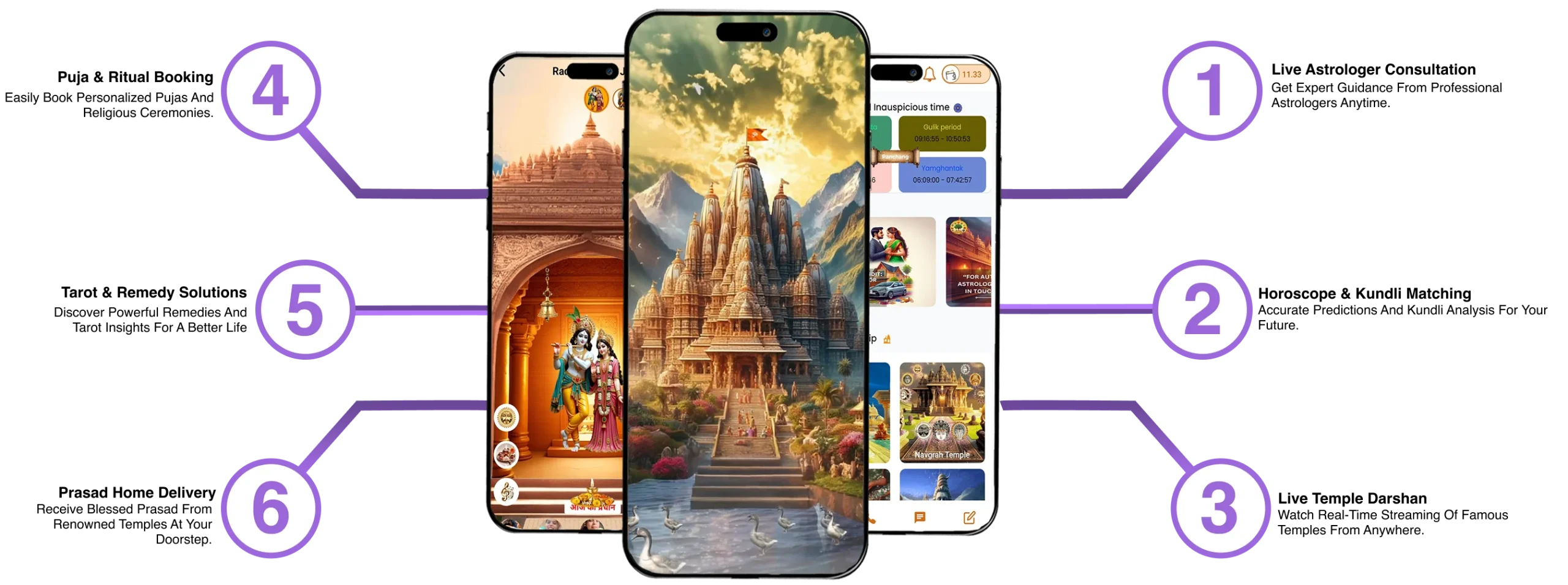 Astro One App is a unique platform that brings together astrology and temple services in one place. Here, you can consult experienced astrologers, get your horoscope matched, read daily predictions, and find answers to your life's important questions. Additionally, Astro One App offers live darshan of famous temples, along with the option to book pujas and rituals. Whether you seek spiritual peace or astrological guidance, Astro One App is always there for you
